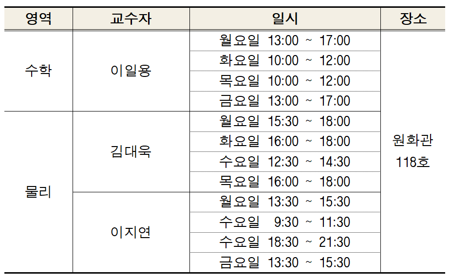 ● 내용: 수학, 물리의 기초 이론 지도 및 문제풀이, 해석 등 맞춤형 지도